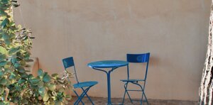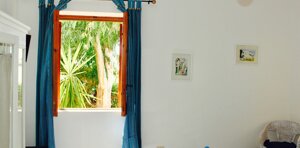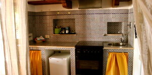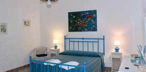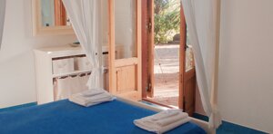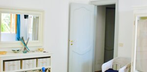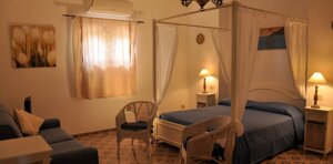 Appartamento finemente rifinito con pavimenti in ceramica sulle tonalità dell'azzurro. Composto da una camera matrimoniale con letto a baldacchino e patio attrezzato di pertinenza; zona soggiorno con divano letto a due posti, angolo cottura/armadio a scomparsa, un secondo patio ombreggiato, bagno privato con box doccia e disimpegno.