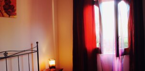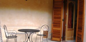 Monolocale composto da camera matrimoniale con letto a baldacchino, cucina attrezzata e bagno privato con box doccia. A disposizione degli ospiti una veranda arredata immersa nel verde.