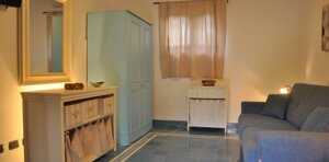 Monolocale composto da camera da letto matrimoniale, ampio bagno e patio ombreggiato e panoramico dal quale, su richiesta, è possibile accedere a un cucinotto di pertinenza.